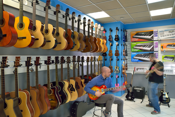 Swoje miejsce znajdą tu zarówno instrumentaliści, jak i ci, którzy wolą tworzyć muzykę w zaciszu domowego studia. Szeroki wybór gitar klasycznych, akustycznych i elektrycznych takich marek jak: Fender, Squier, Washburn, Alhamabra, Richwood, Morisson, Hohner. Również wszelkie niezbędne akcesoria jak: struny, pokrowce, paski, stroiki i stojaki gitarowe. Jeśli szukasz instrumentów klawiszowych, w ofercie sklepu są popularne marki jak Casio, czy Kawai.